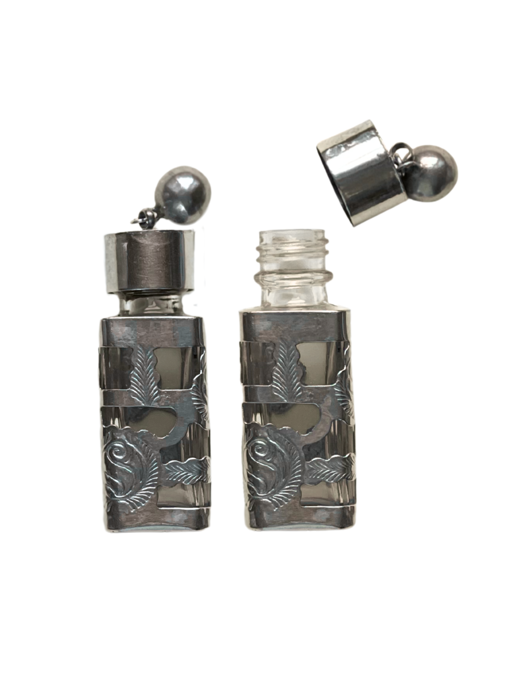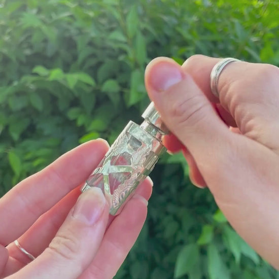 Vintage silver & glass perfume bottle pendant ☆ Made in Mexico