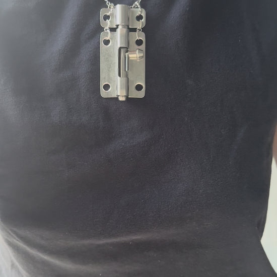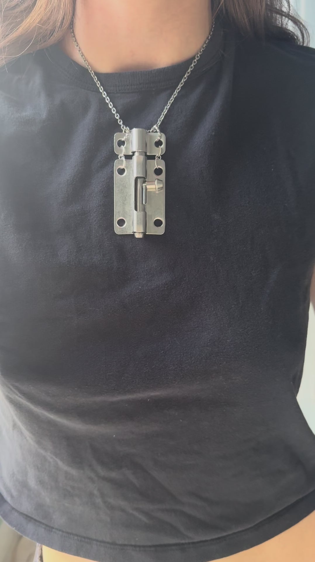 Polished stainless steel object on 17” stainless steel chain with sterling silver findings ☆