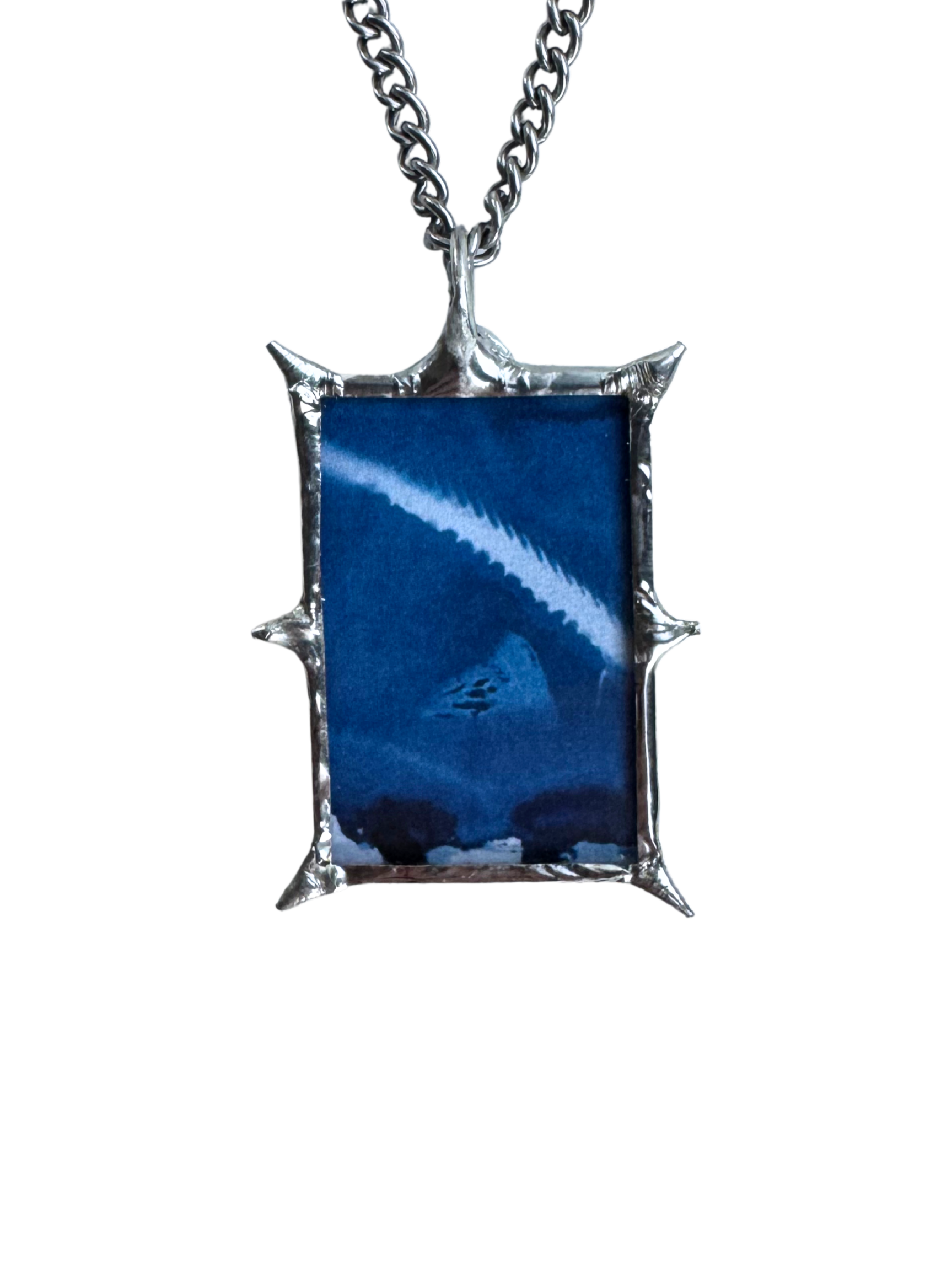 Digital print of original cyanotype print made with fishbones & lemon, enshrined in glass & metal reliquary ☆