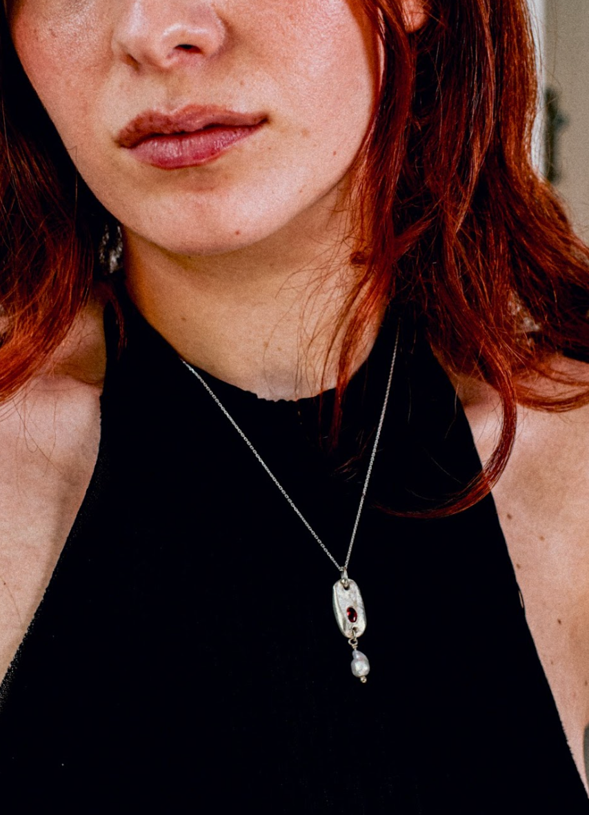 Molten pendants are torch-fired by hand with precious metal clay & ethically sourced stones. Each pendant is a pièce unique: a one-of-a-kind amulet forged in flame-lit ritual.