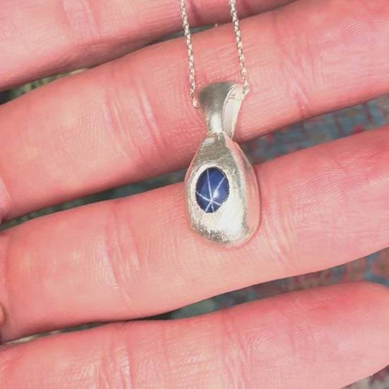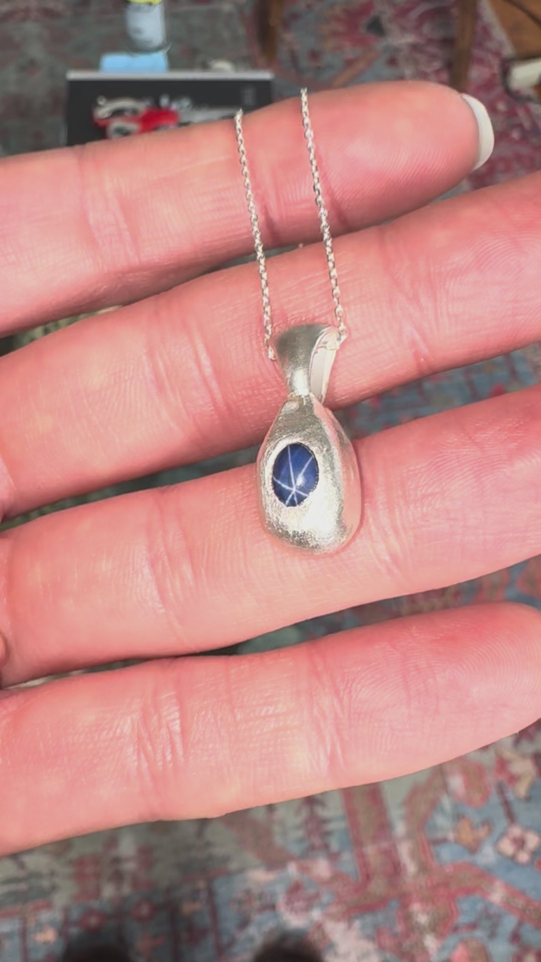 Pure fine silver molten star sapphire drop ☆ Star sapphire contains tiny needle-like mineral inclusions that form a star shape under bright light.